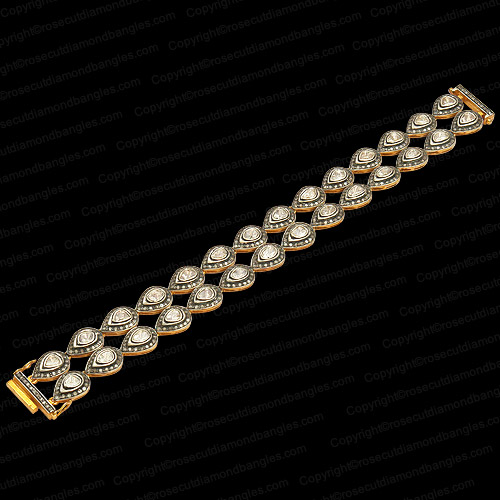 Bracelet with Singlecut and Rosecut Diamonds set in 14k Gold and Sterling Silver.